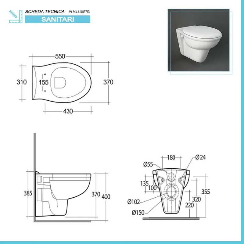 • Dimensioni wc:L 37 x p 55 x H 37 cm;
