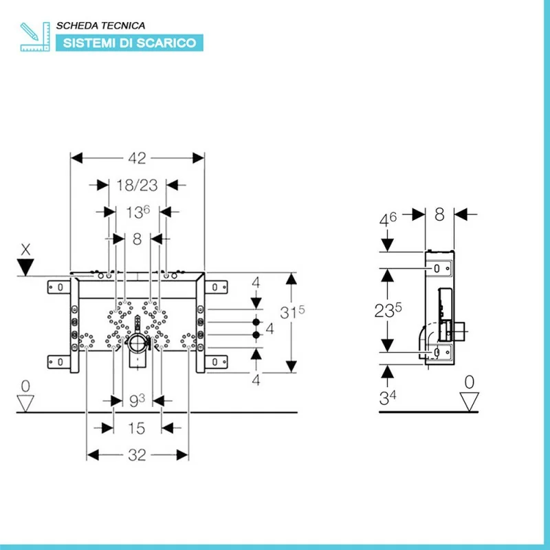 Geberit Combifix – modulo di installazione bidet sospesi su muratura interasse regolabile da 18 a 23 cm 457.608.00.5