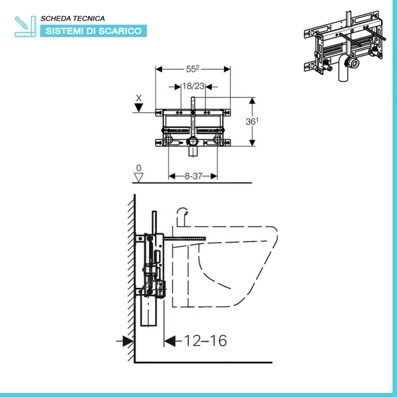 Geberit Combifix – modulo di installazione in acciaio inox bidet sospesi su muratura regolabile da 18 a 23 cm