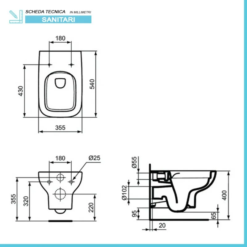 • Dimensioni wc:L 35,5 x p 54 x H 33,5 cm;