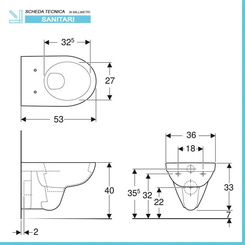 • Dimensioni wc:L 35,6 x p 53 x H 35,5 cm;