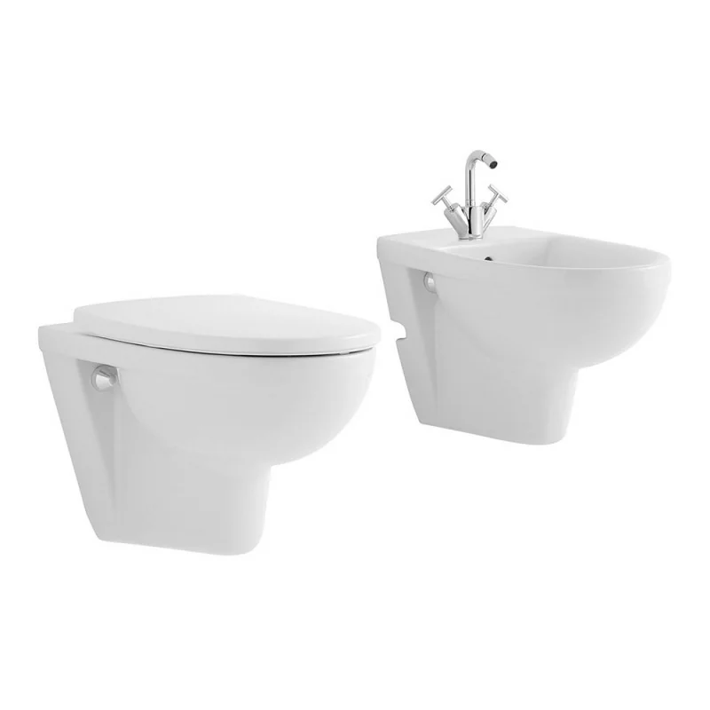 I sanitari con installazione sospesa Selnova sono realizzati in ceramica, resistente e antibatterica,con finitura bianco lucido. Il set è composto dal vaso con brida e scarico a parete, bidet con foro per miscelatore e troppo pieno,e sedile originale Selnova,avvolgente con fissaggio dal basso e chiusura standard.