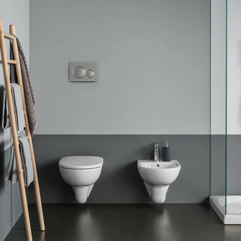 Sanitari sospesi – Geberit in ceramica lucida,wc con brida,bidet monoforo e sedile avvolgente