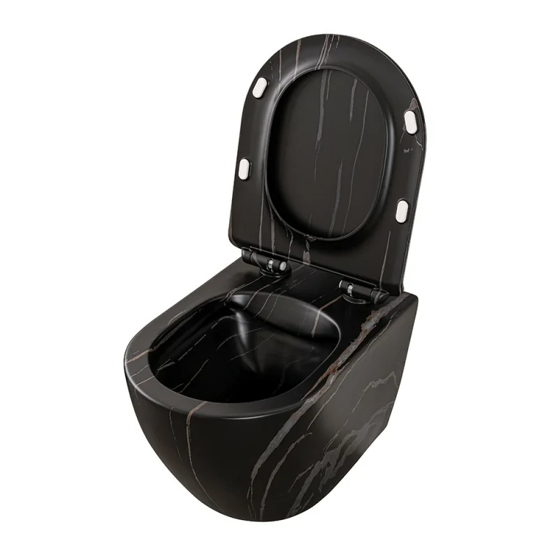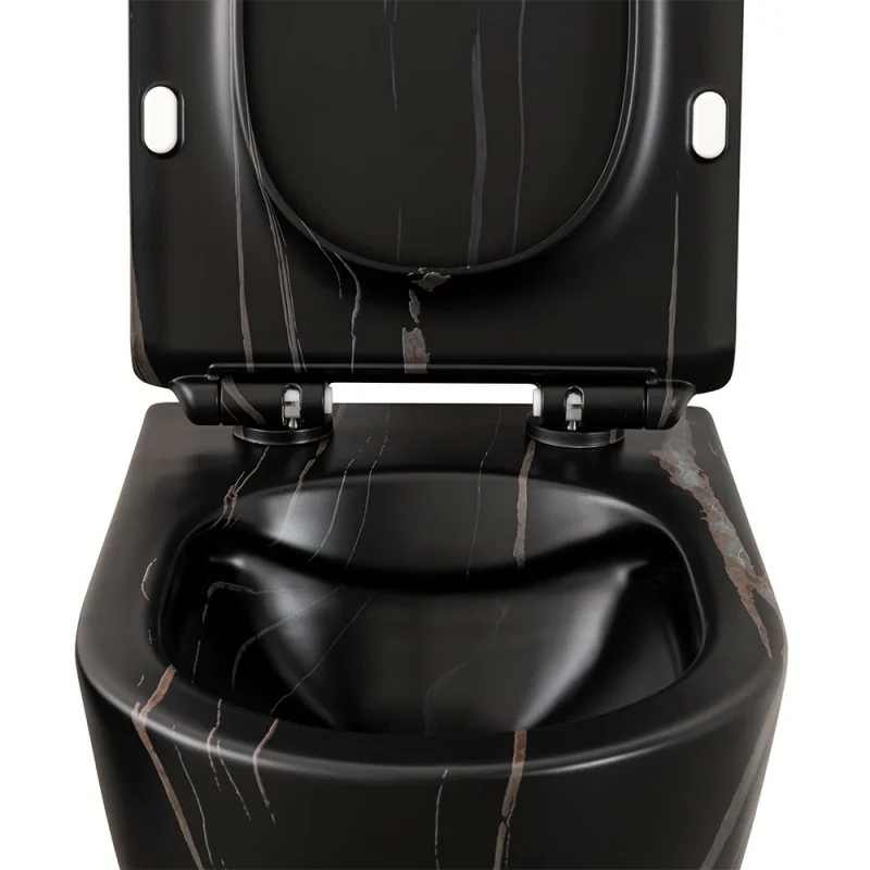 Sanitari sospesi Rimless effetto marmo nero con sedile Tokyo