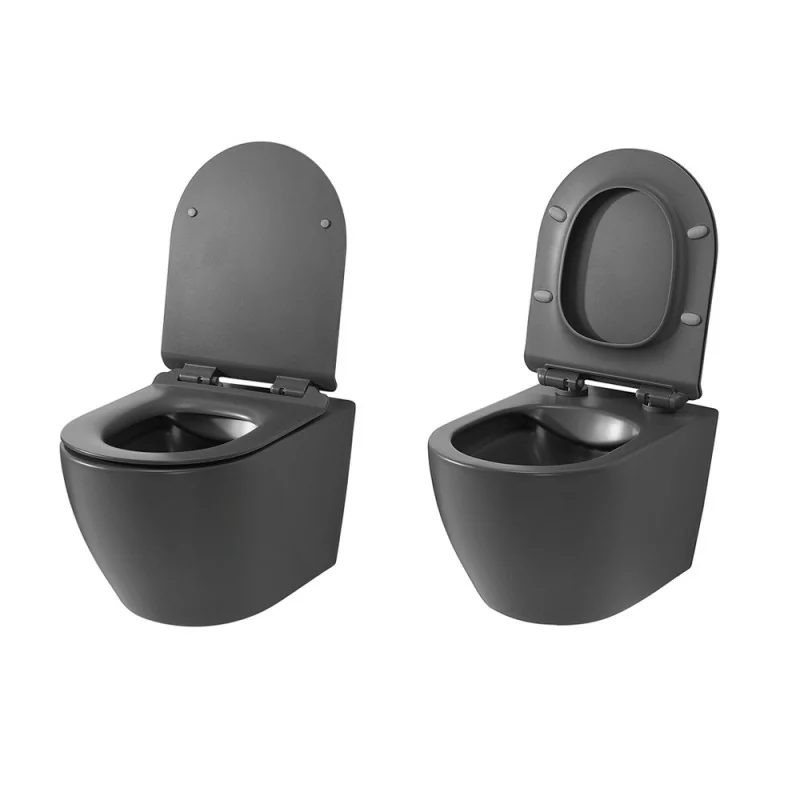 Sanitari sospesi rimless in ceramica grigio opaca con copriwc Tokyo