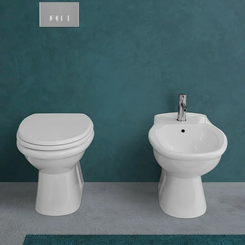Set wc e bidet tradizionali con brida classica e sedile con chiusura soft-close