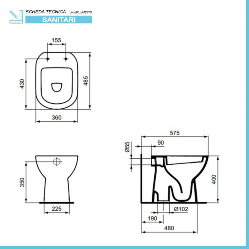 • Dimensioni copriwater:L 36,5 x p 44,5 x H 35 cm;