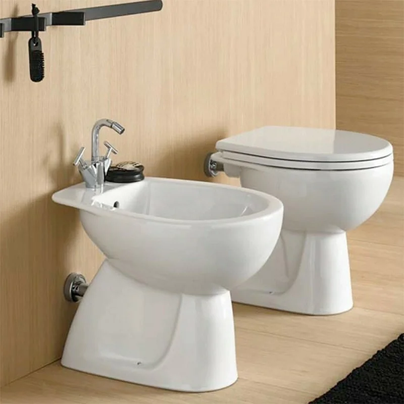 Sanitari tradizionali – Geberit in ceramica lucida,wc con brida e scarico a parete,bidet monoforo e sedile originale