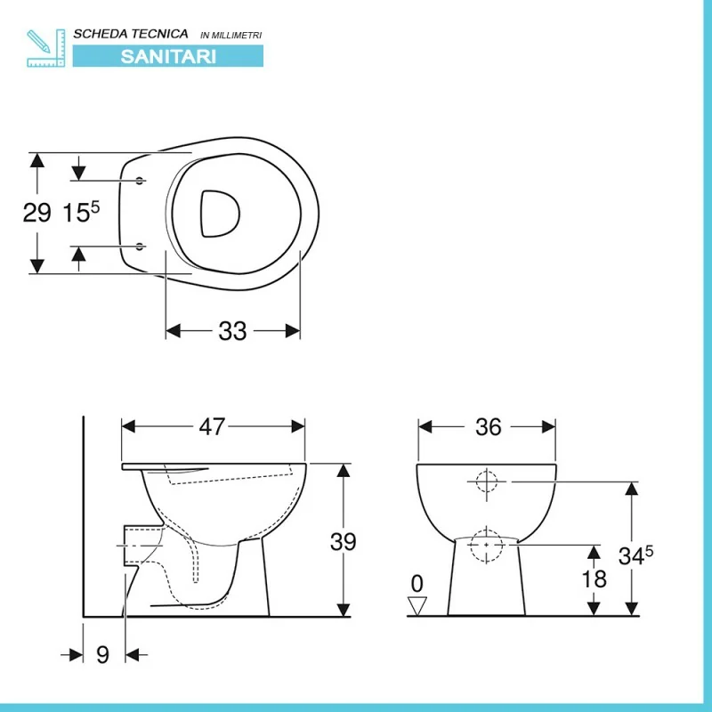 • Dimensioni wc:L 36 x p 47 x H 39 cm;