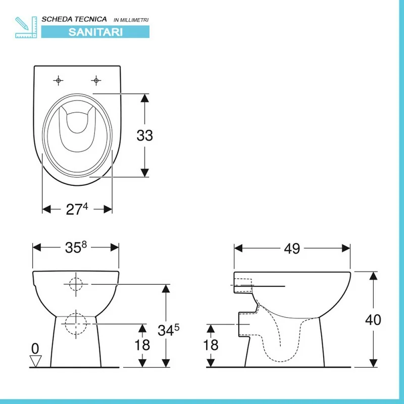 • Dimensioni wc:L 36 x p 49 x H 40 cm;