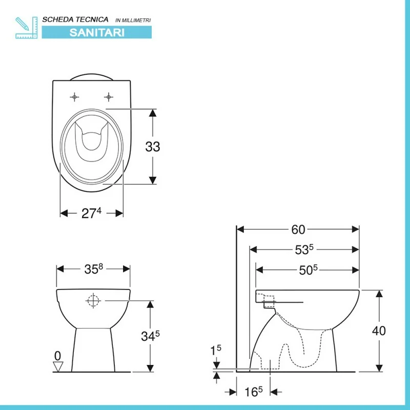 • Dimensioni bidet:L 35,8 x p 52 x H 40 cm;