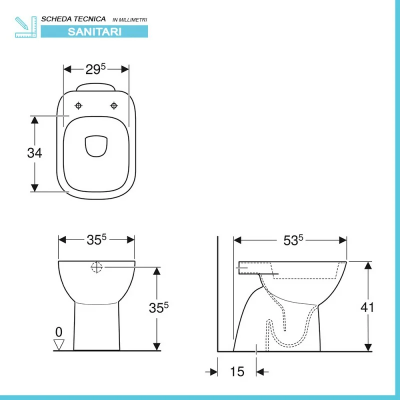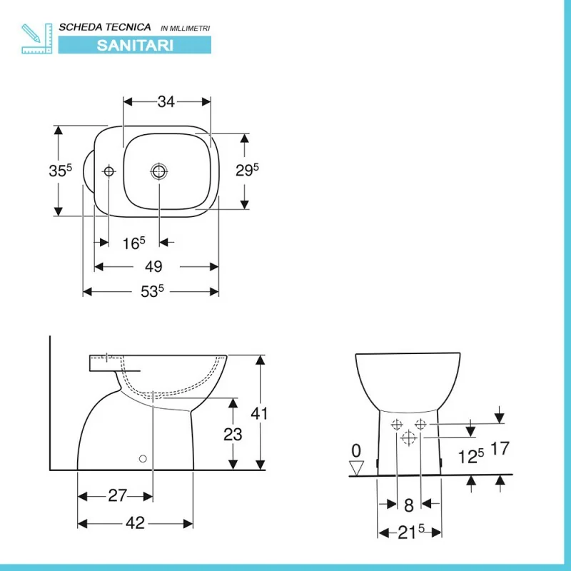 • Dimensioni bidet:L 35,5 x P 53,5 x H 41 cm;