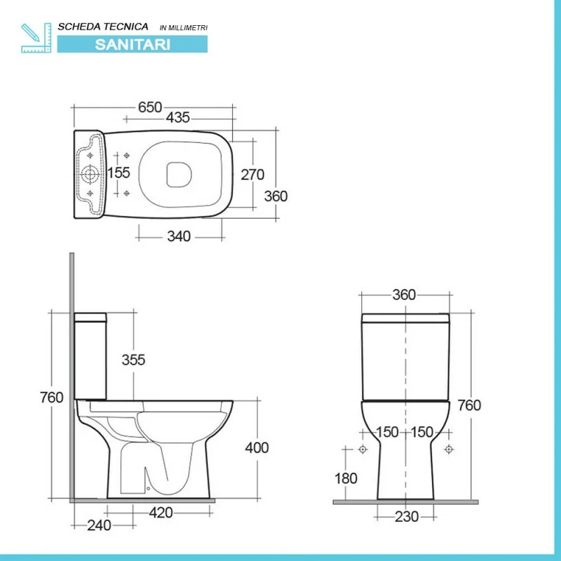 • Dimensioni bidet:L 36 x P 50 x H 40 cm;