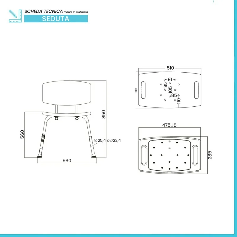Sedia doccia caratteristiche tecniche: