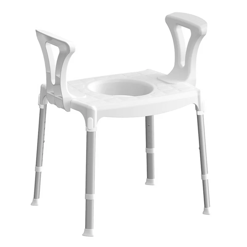 La struttura robusta e i braccioli laterali permettono un sostegno affidabile, riducendo il rischio di scivolamenti e facilitando la gestione quotidiana dell’autonomia personale.
