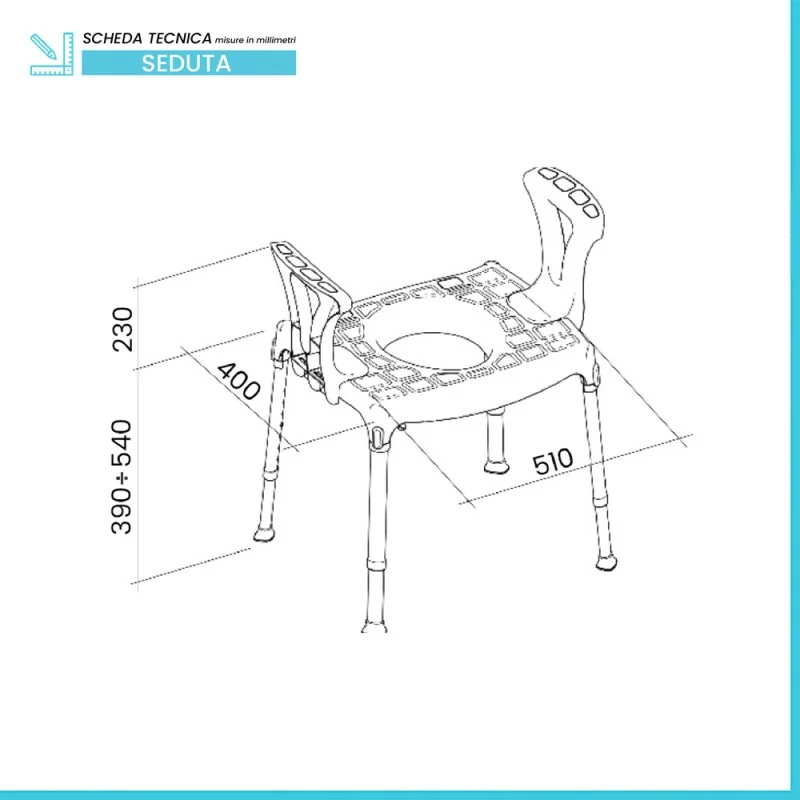 Il design ergonomico assicura un comfort elevato anche durante utilizzi prolungati, mentre i materiali resistenti all’umidità e facili da igienizzare la rendono perfetta anche per bagni, spogliatoi e stanze da degenza. La finitura bianca la rende discreta, pulita e adatta a qualsiasi ambiente.