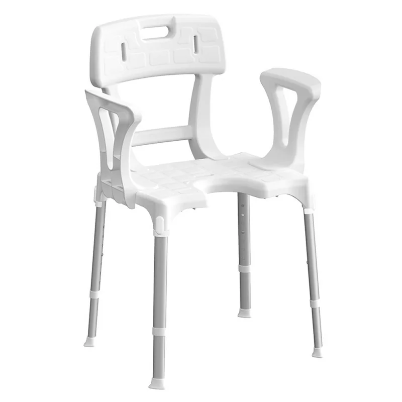 La sedia da doccia con apertura centrale e braccioli e schienale, in finitura bianca, è progettata per offrire sicurezza, sostegno e praticità a persone con mobilità ridotta, anziani o utenti che necessitano di assistenza nella doccia. L’apertura centrale favorisce un’igiene ottimale e agevola le operazioni di lavaggio, rendendo l’esperienza più confortevole e autonoma.