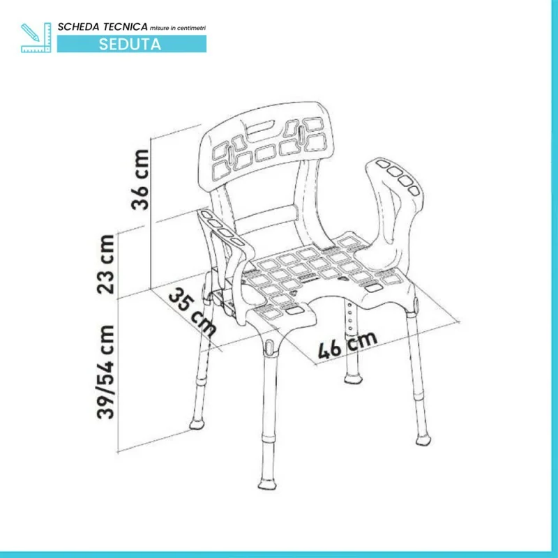 • Tipologia: Sedia da doccia con braccioli e schienale;
