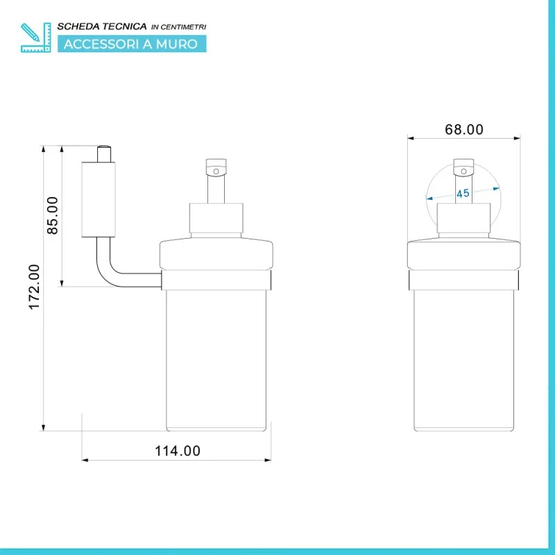 • Dimensioni dispenser: L 6,8 x p 11,4 x H 17,2 cm;