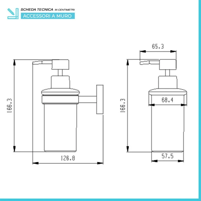 • Dimensioni dispenser portasapone:p 6,5 x H 16,6 cm: