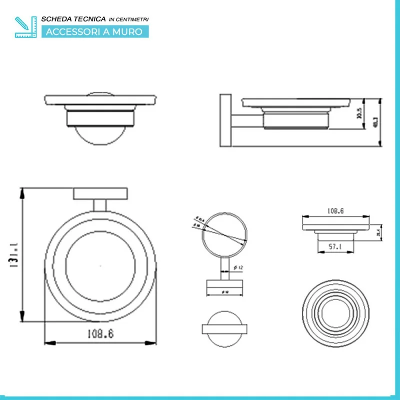 • Dimensioni portasapone:d 10,8 x p 13,1 cm;