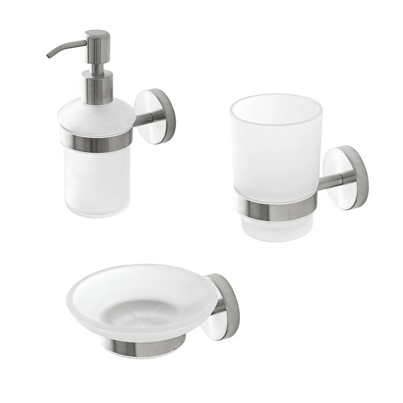 Set accessori a muro 3 pezzi in acciaio inox satinato e viti incluse | Galassia