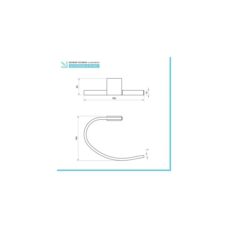 • Dimensioni portasciugamani ad anello: d 19 x p 5,3 x H 14 cm;