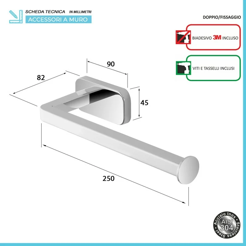 • Dimensioni porta rotolo: L 17,4 x P 8,2 x H 4,5 cm;