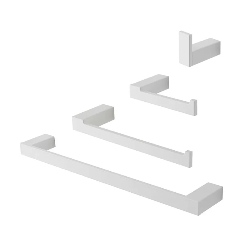 Questo set  in alluminio bianco offre una soluzione robusta ed elegante per organizzare asciugamani, accappatoi e carta igienica  grazie al sicuro fissaggio a parete con viti e tasselli inclusi. Il materiale in alluminio garantisce durabilità e un aspetto moderno.