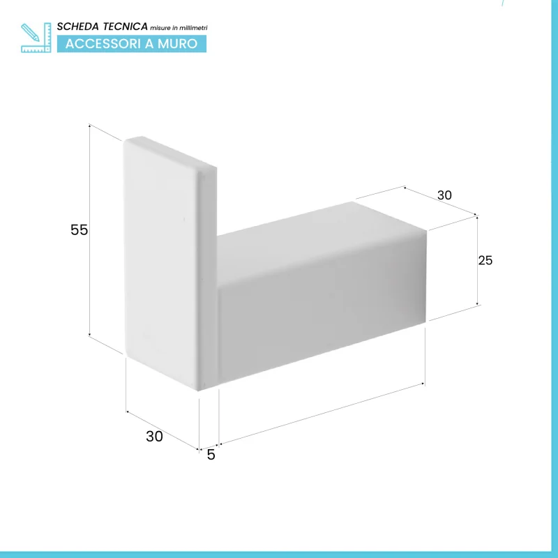 • Dimensioni appendino: L 3 x P 6,5 x H 5,5 cm;
