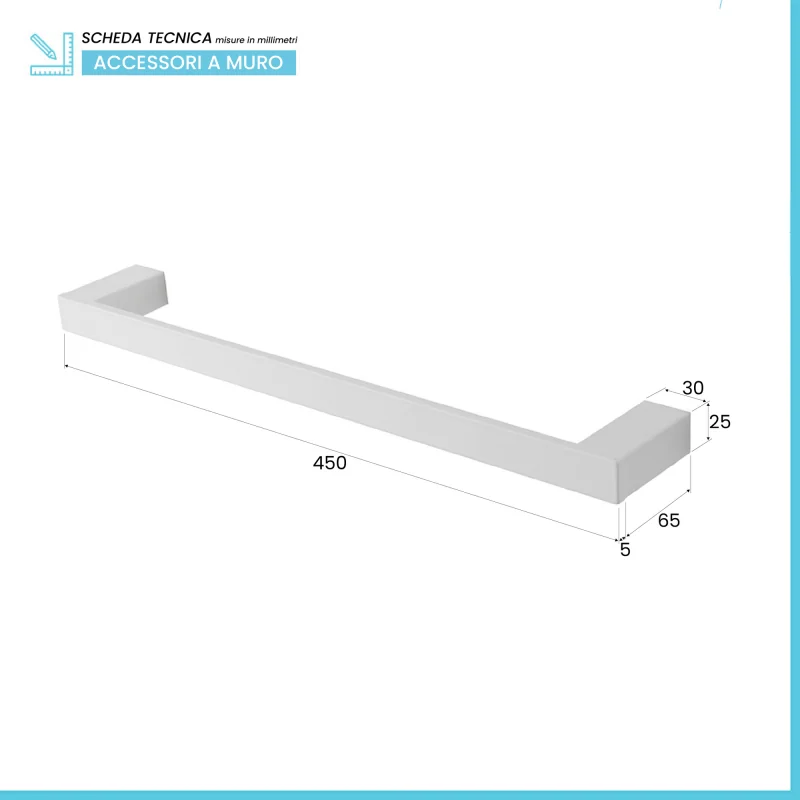 • Dimensioni barra asciugamani: L 35 x P 6,5 x H 5 cm;