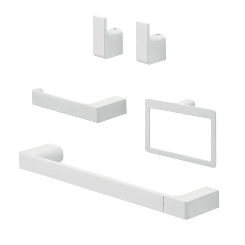 Set accessori bagno 4pz da parete in acciaio bianco Pirenei