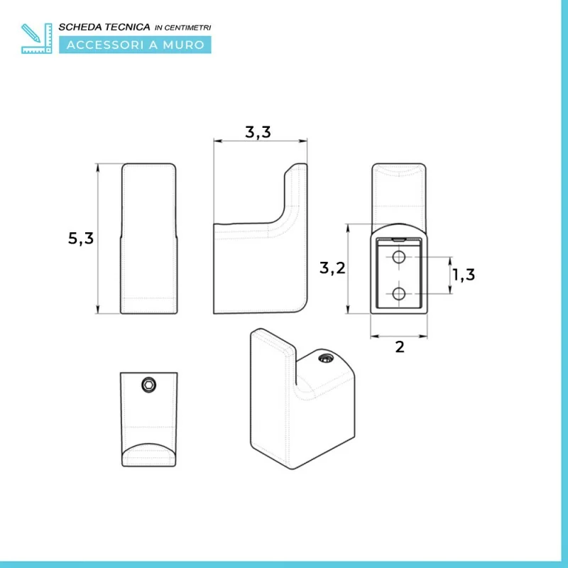 • Dimensioni appendini: P 3,3 x H 5,3 cm;