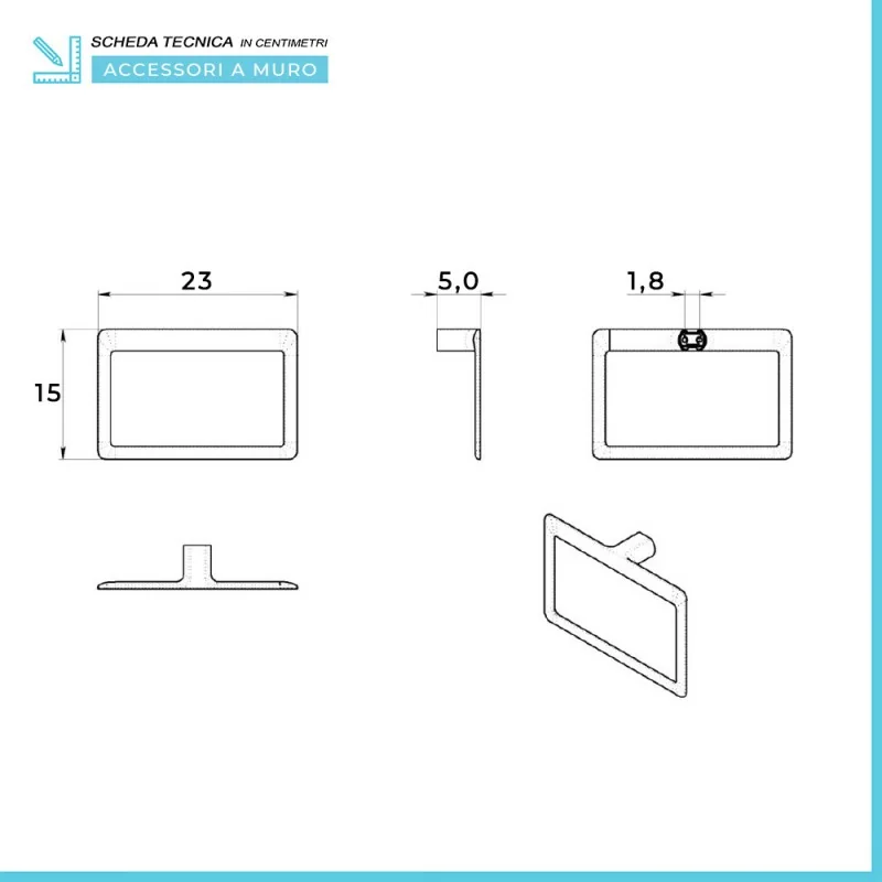 • Dimensioni porta rotolo: L 16,6 x P 2,6 x H 4,5 cm;