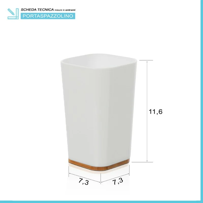 • Dimensioni porta spazzolini: L 7,3 x P 7,3 x H 11,6 cm;