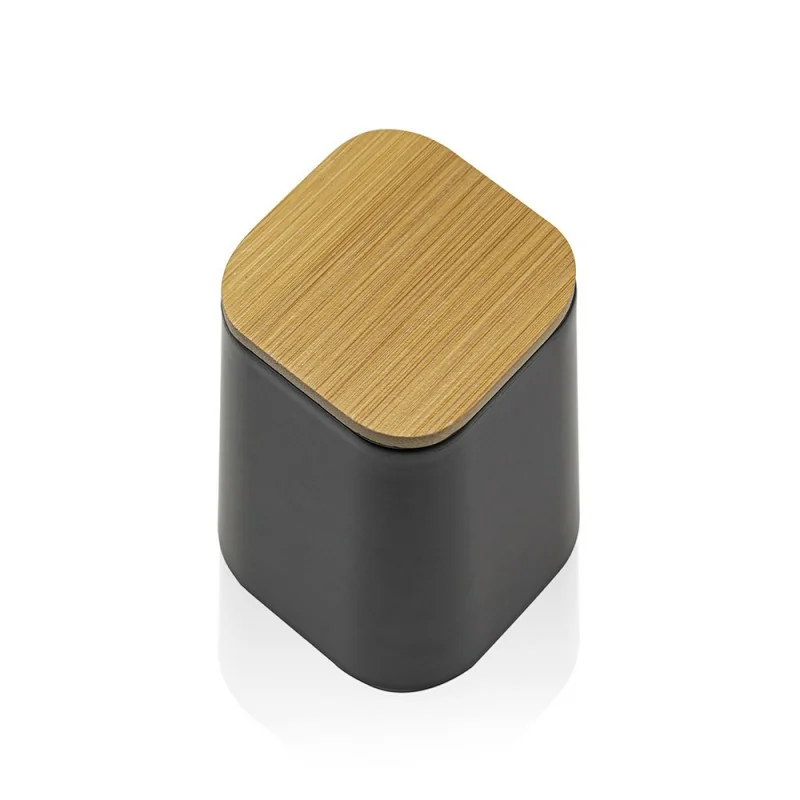 Set bagno dispenser e portaspazzolino nero opaco con dettagli in bambù Scheda tecnica dispenser sapone nero opaco con dettagli in bamboo Scheda tecnica bicchiere portaspazzolini in finitura nero opaco con dettagli in bamboo Diffusore sapone con erogatore a pompa in plastica nera opaca e bamboo Porta spazzolini nero opaco con dettagli in legno di bambù Kit da bagno con dispenser sapone e porta spazzolini in finitura nera opaca con dettagli in bamboo