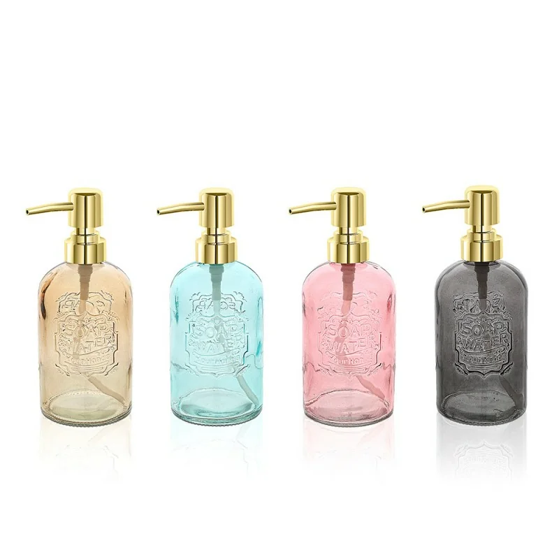 Set dispenser sapone liquido in vetro colorato con capienza 400 ml