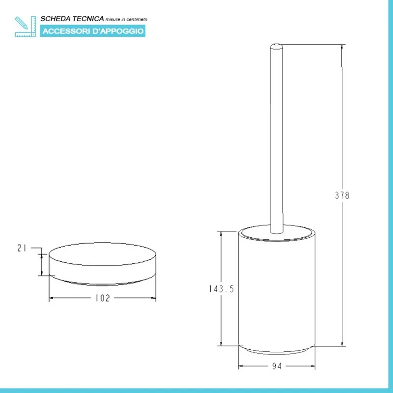• Dimensioni portascopino:H 37,8 x ø 9,4 cm;