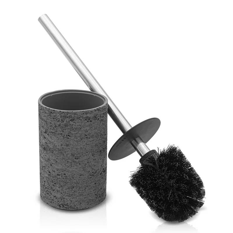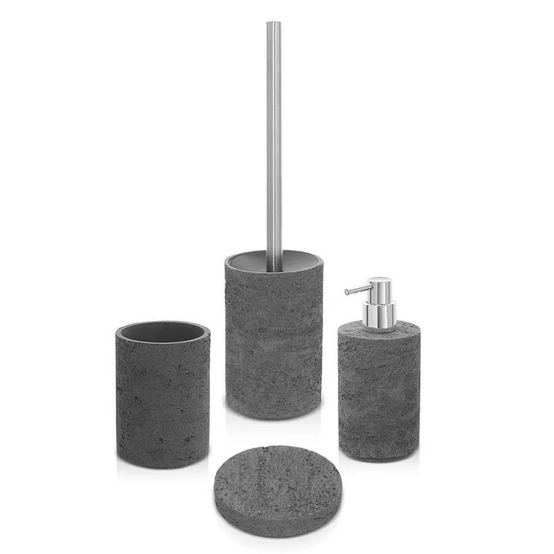 Accessori bagno in set completo da 4 pezzi grigio in resina effetto pietra Matera