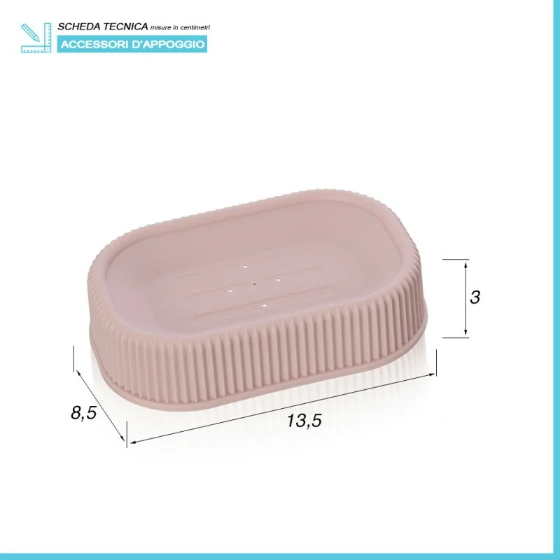 • Dimensioni portasapone:L 13,5 x p 8,5 x H 3 cm;