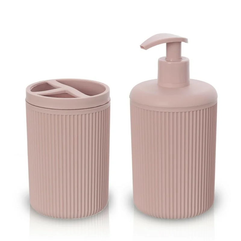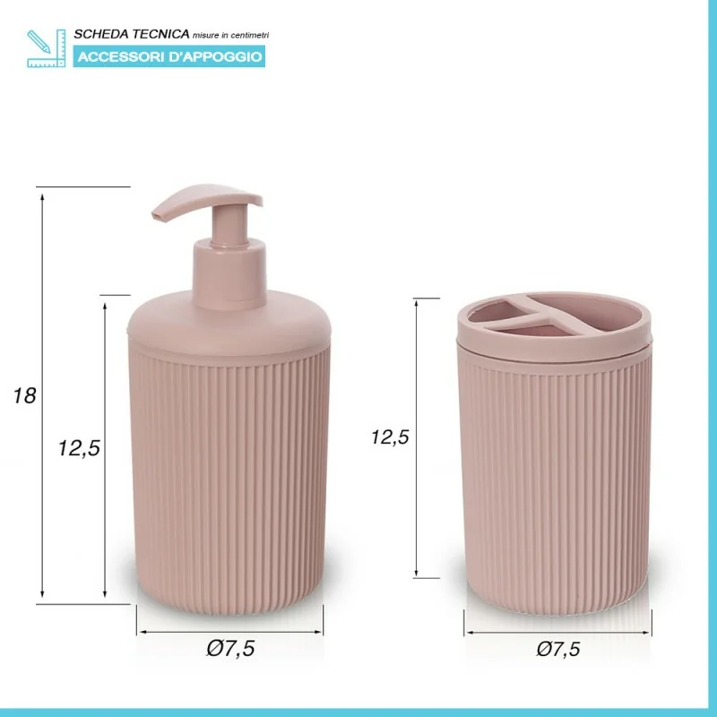 Set accessori bagno da appoggio – linea Ring dispenser e portaspazzolini rosa in plastica