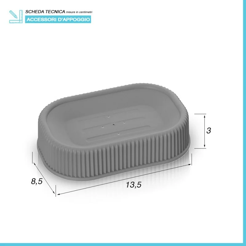 • Dimensioni portasapone:L 13,5 x p 8,5 x H 3 cm;