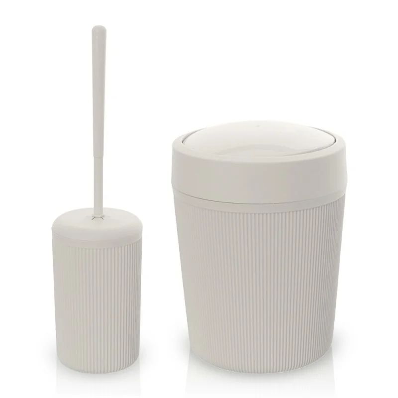 Set accessori bagno – portascopino e pattumiera linea Ring beige in plastica