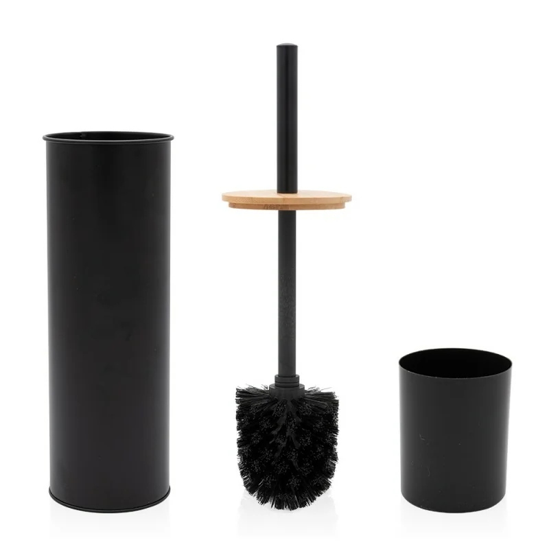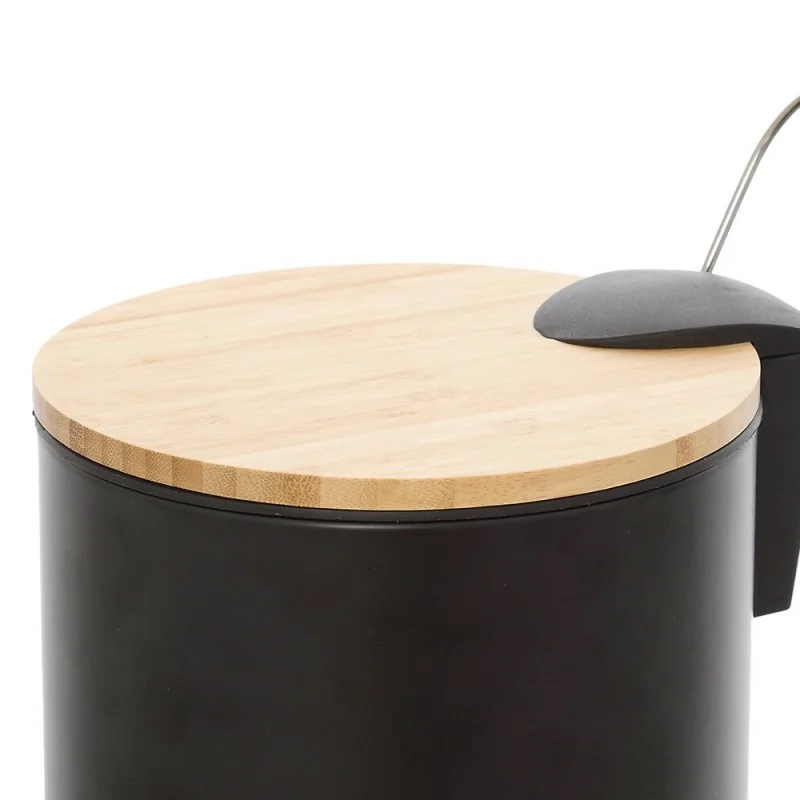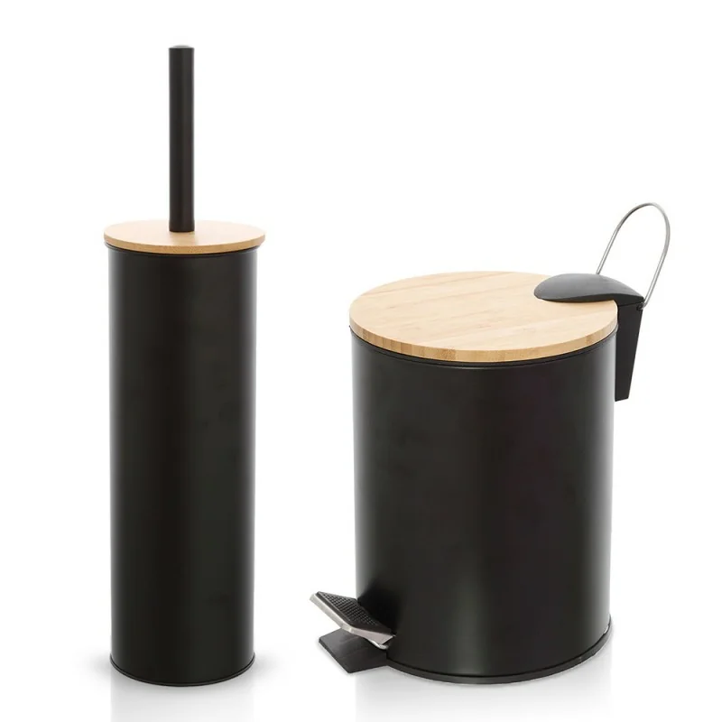 Set accessori bagno scopino e pattumiera nero in acciaio e bambù Haiti