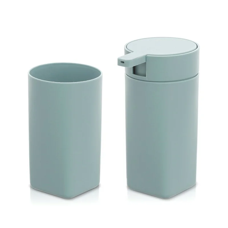 Il set bagno da 2 pezzi comprende un dosasapone ed un bicchiere portaspazzolini da appoggio. Il dosa sapone ha una capacità di 400 ml ed ha la pompa di erogazione facilmente removibile per il rabbocco del sapone.