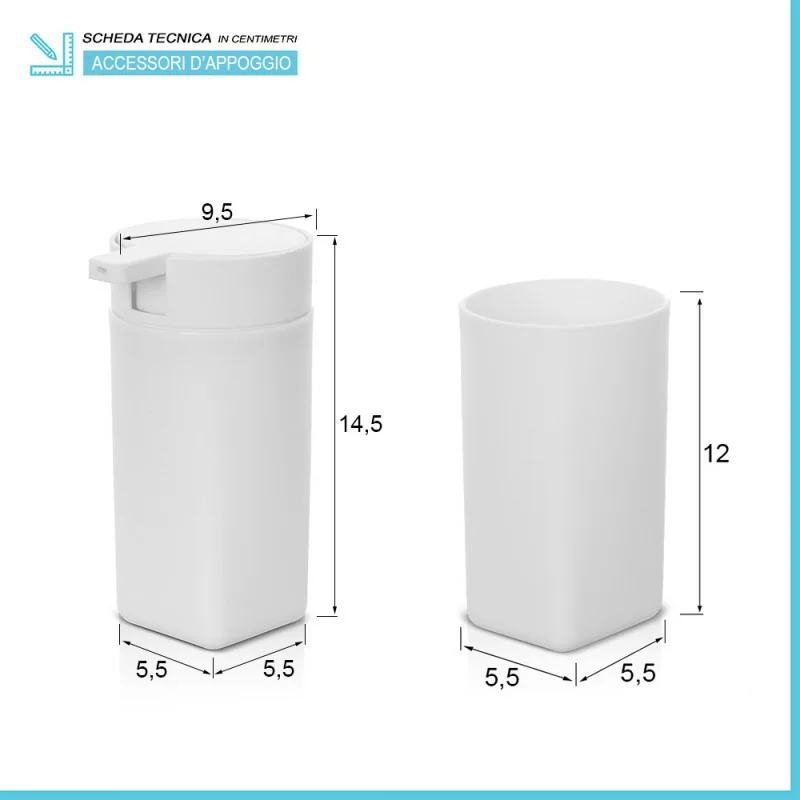 • Set composto da dispenser,porta spazzolini e porta sapone;