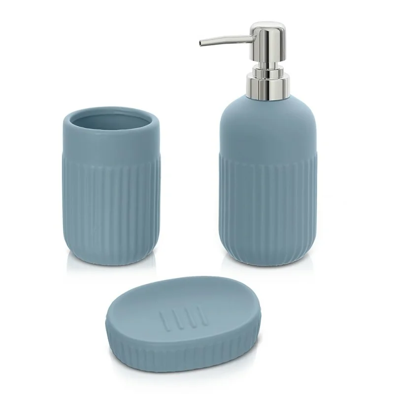 Accessori bagno da appoggio in set 3 pezzi in ceramica colore turchese cobalto Cup