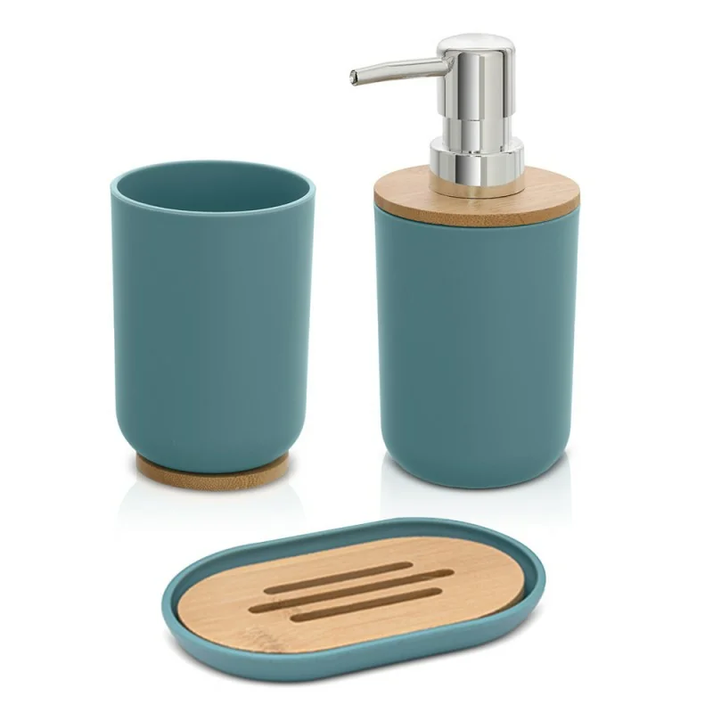 Accessori bagno da appoggio in set 3 pezzi in abs acquamarina e bambù Surf