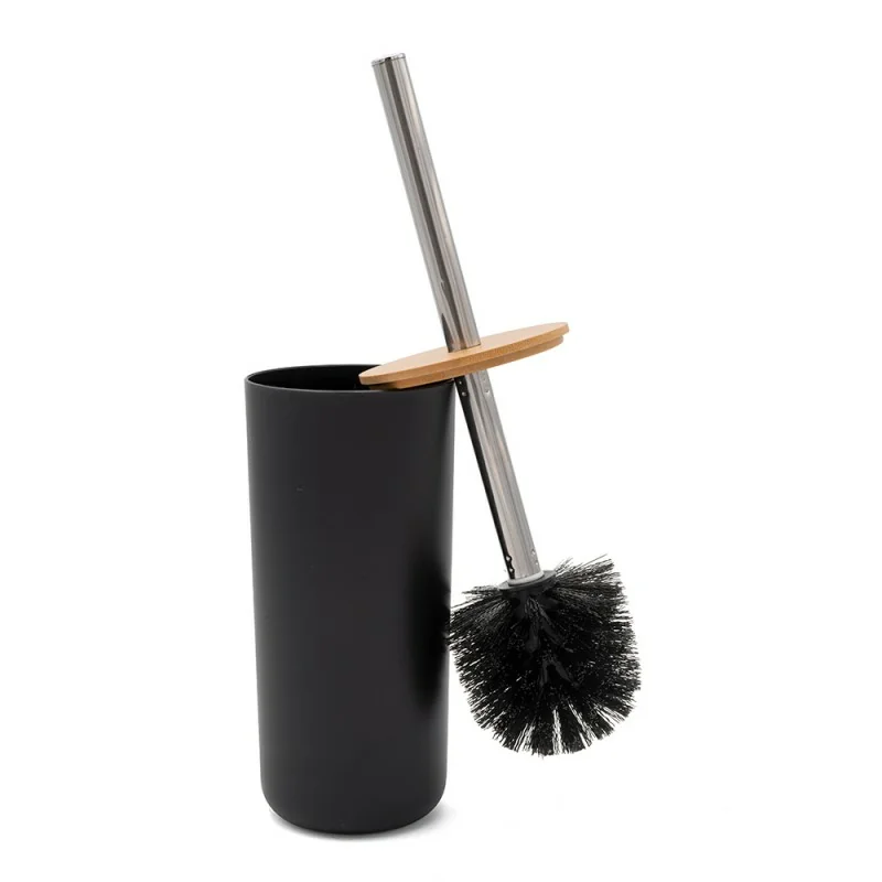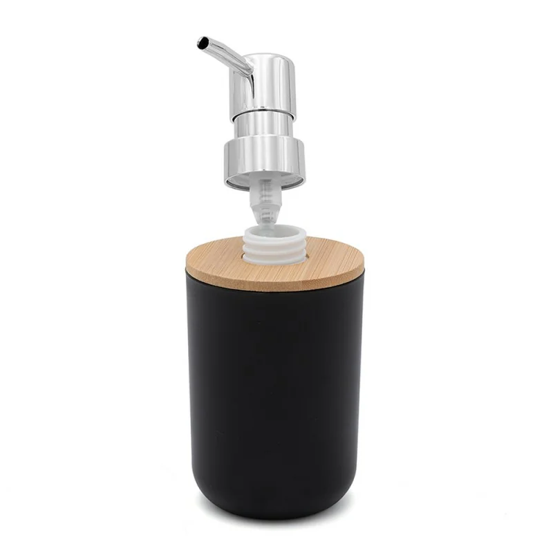 Set completo accessori bagno - 4 pezzi da appoggio linea Surf in abs colore nero e legno di bambù