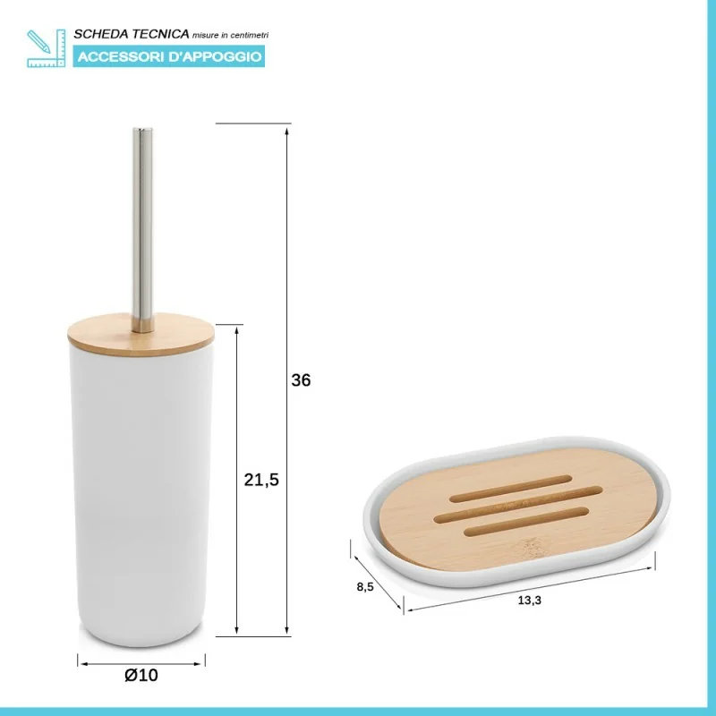 • Il set INCLUDE dispenser,portaspazzolini,porta saponetta e scopino WC;